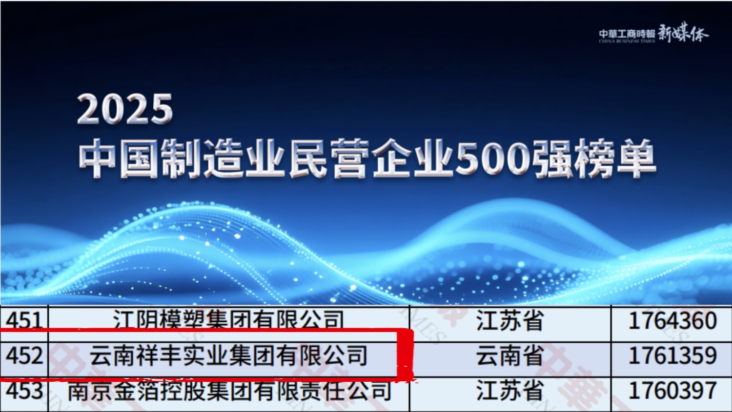 祥豐集團(tuán)榮登2025中國制造業(yè)民營(yíng)企業(yè)500強(qiáng)榜單!位列全國...